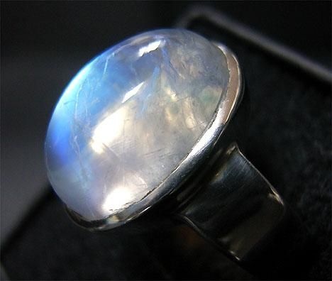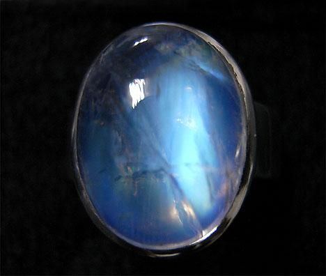 高品質ロイヤルブルームーンストーンのリングです。妖しく輝くネオンブルーシラーや、オーロラシラーが、とても美しい。