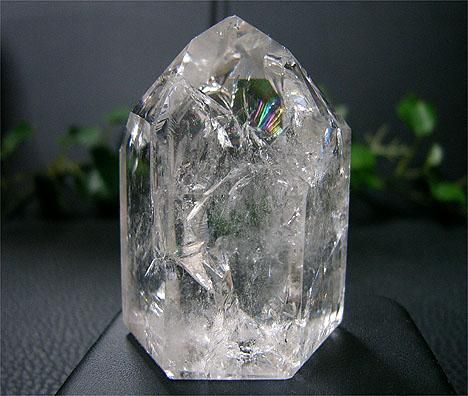 内部クラックに、とても美しい虹が浮かび上がる、レインボー水晶ポイントです。その美しさは、見る者を魅了します。エネルギーの出方も、一般の水晶ポイントとは違い、四方八方を照らす感じ^^