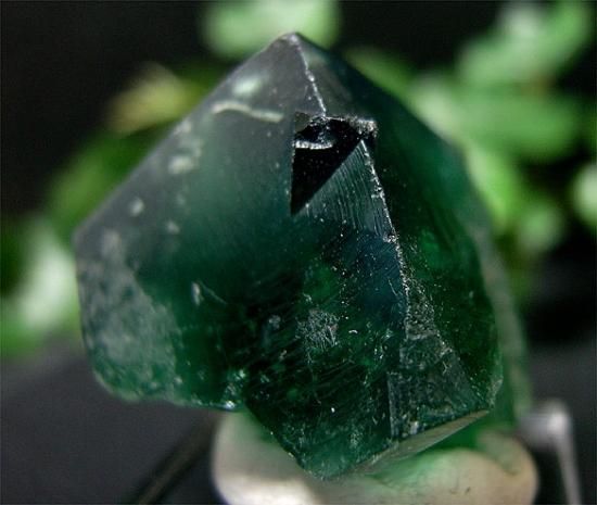 このフローライトは太陽やブラックライトの紫外線で、青い蛍光色を呈します。画像の4枚目・5枚目・6枚目は、蛍光灯下の撮影で、斜めから軽くブラックライトを翳したものです。