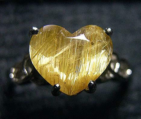 タイチンルチルが並列にインクルージョンしている為、キャッツが出る、とても可愛いリングです。上記画像からは少し分かり難いでしょうが、石の表面周りには、カットをが施されていますので、角度によってキラキラと輝きます。