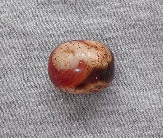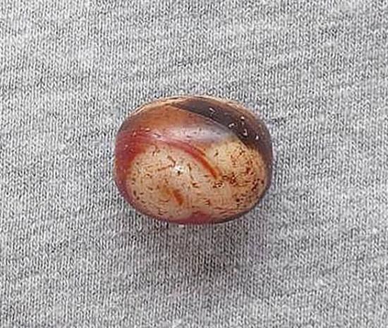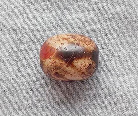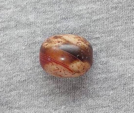 天珠と言えば地味な色合いの物という印象がありますが、この天珠は白とややオレンジ掛かった赤のコントラストが鮮やかな天珠です。招財天珠は、金運や商売繁盛に特化した天珠です。お守りとしてお持ち下さい。(画像からもお分かり頂けるように穴が貫通しています。ブレスやネックに加工してもお持ち頂けます。)